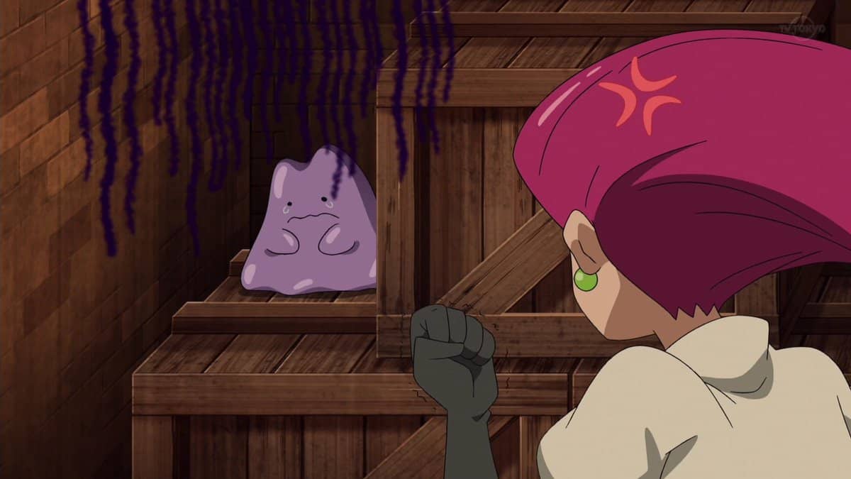 This is in its entirety a filler episode. Meowth is sick and tells them in his sick rambling that Team Rocket is missing something. Jessie and James decide that what they are missing is understanding themselves what Pikachu feels and what he says. They watch clips of Pikachu and just try to predict what he says. While they are doing this, the same Morpeko from Episode 28 and 33 is seen in the corner of Team Rocket’s hideout eating their food.