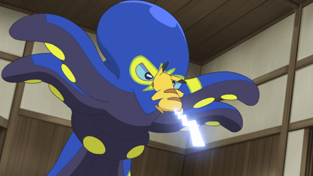 Shortly after, Pichu is introduced as he plays with three Butterfree in the forest and is later attacked by an Ekans, who he defeats by using Thundershock. Here, we are also reminded that Pichu can’t really control his electricity as he is slightly hurt by it every time he uses it.