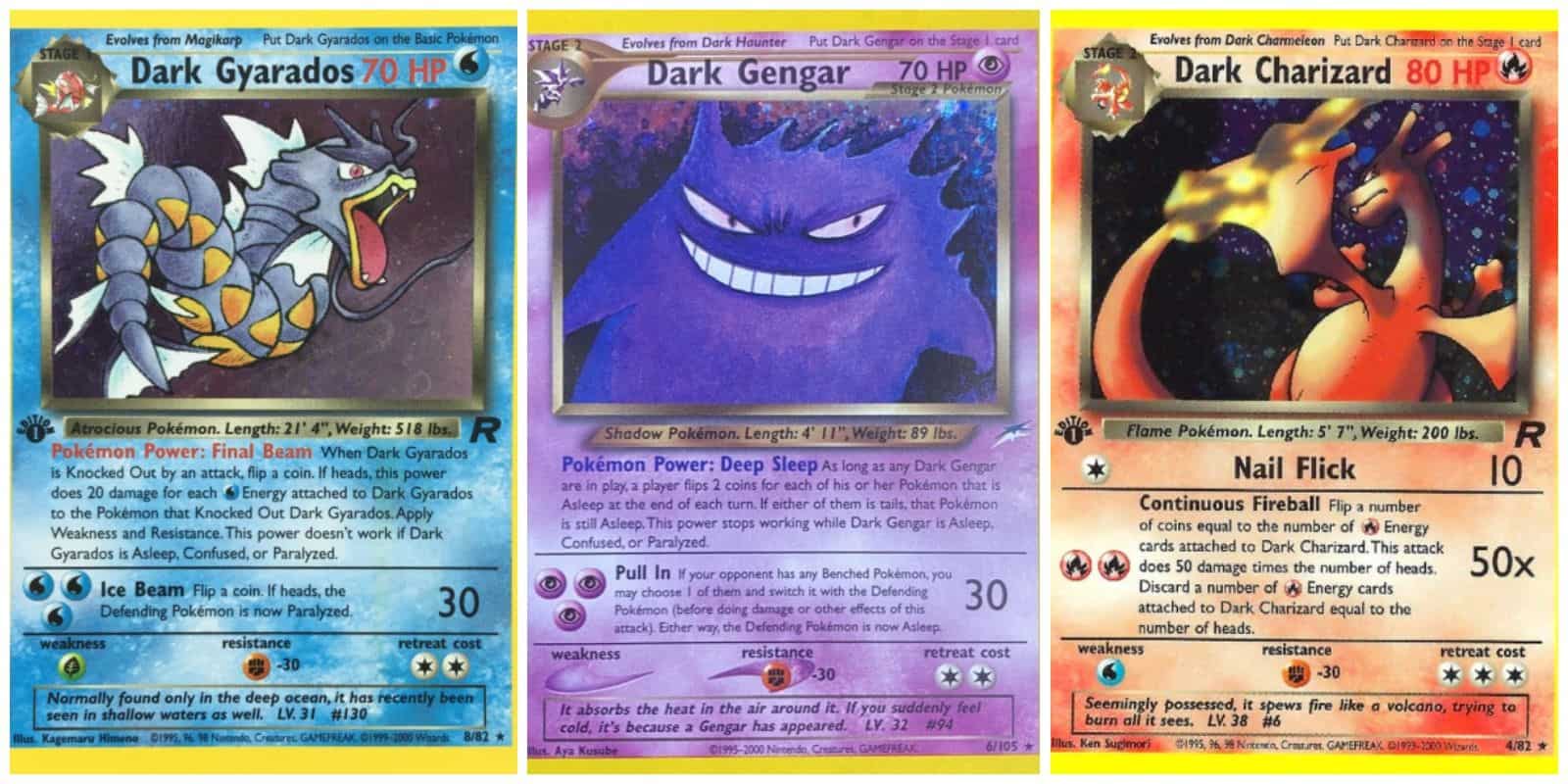 Finally, the latest appearance of dark and corrupted Pokemon are in the expansion pack: EX Team Rocket Returns. This didn’t just unleash more Dark creatures onto the Pokemon world, but it also showed off the Pokemon Star cards, which were pokemon with different coloration than the rest of their species.