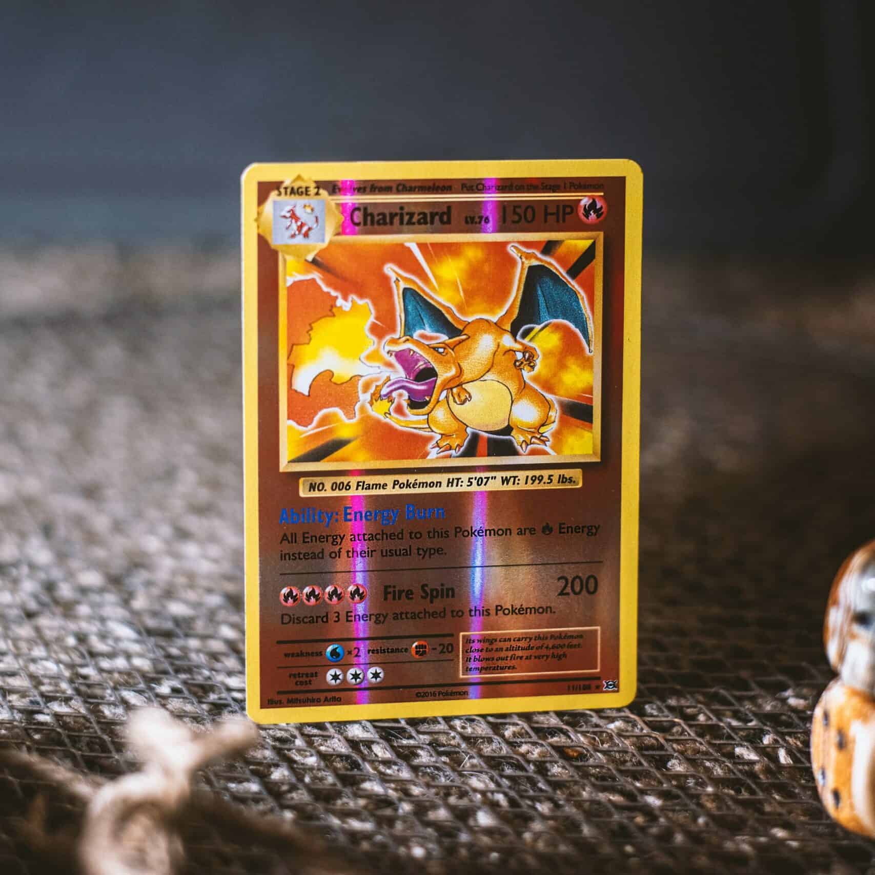 Let’s say your team has managed to battle the enemy to a standstill over 10 turns, and for 5 of those ten turns, you place a fire token on your Dark Charizard. Whenever you finally use the continuous flame attack, you would flip 5 coins, and let’s say you get three heads. 50 multiplied by 3 is 150 points of damage, and then you would discard three fire tokens.