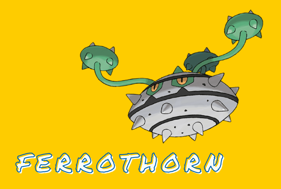 Ferrothorn, the thorn pod Pokémon, is a dual Grass/Steel-type Pokémon introduced in Gen 5. It’s the evolution of Ferroseed.