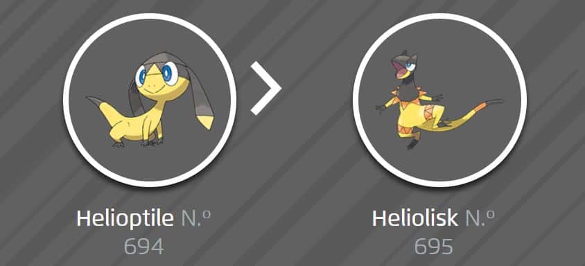 Heliolisk can’t evolve, but Helioptile can evolve into Heliolisk when it gets exposed to a Sun Stone.
