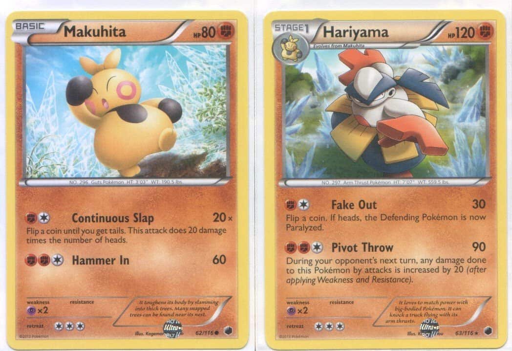 In the TCG, Makuhita has 14 different cards. Three common ones in EX Ruby & Sapphire, its debut, and then only common cards in EX Deoxys, EX Emerald, EX Delta Species, Great Encounters, Arceus, Undaunted, Boundaries Crossed, Plasma Freeze, Furious Fists, and Sun & Moon. It also has a card in the Lycanroc Half Deck.