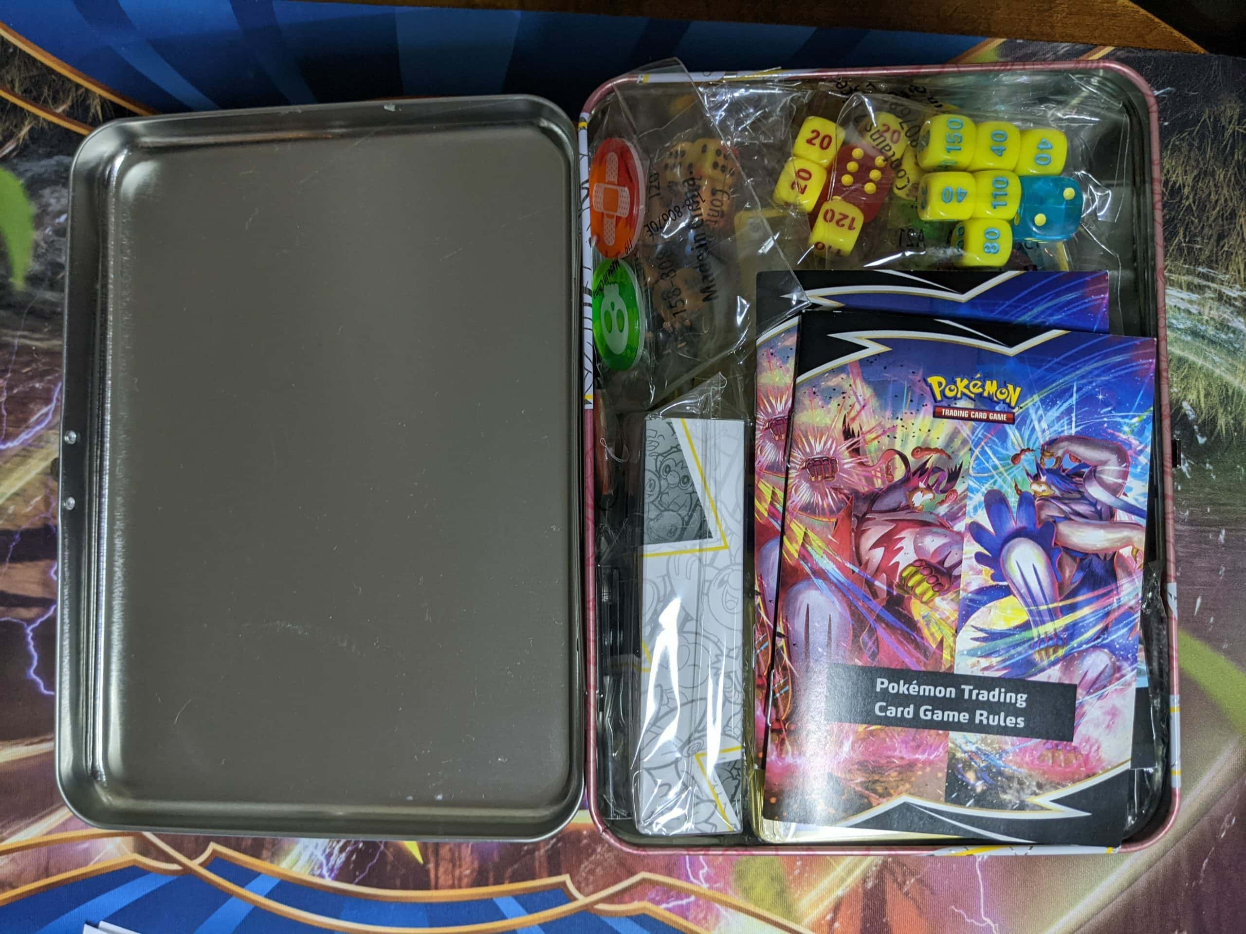 Lunchbox tins look like old-school lunchboxes. They are roughly rectangular, with a latch near the handle. These usually come with five booster packs and a mini binder, stickers, a notebook, or other various goodies. They are a bit more expensive than standard collector’s tins and also lack the display window.