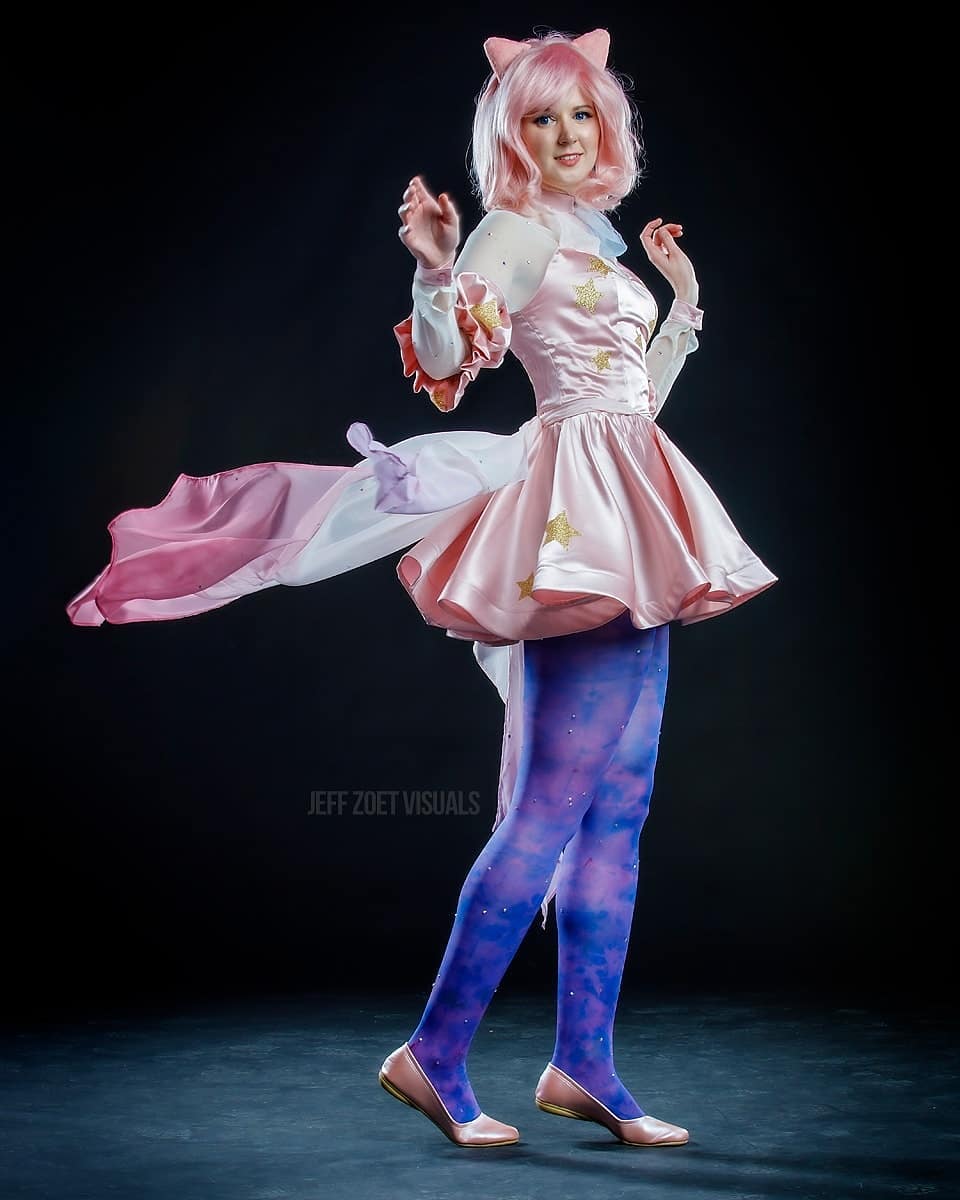 Pink…lots of pinks. I can’t guide you much throughout the process of Mew because it’s a different costume for everybody. To me, the most important thing about making a costume for Mew is making something Mew would love. Sparkles, flounce, etc.—anything the cute little god Pokémon would say “mew” to.