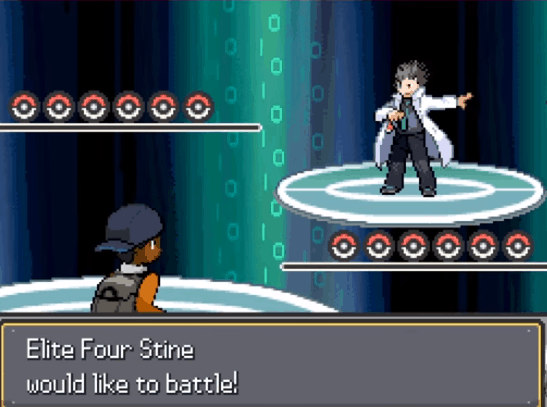 The first battle in the Elite 4 is against Professor Stine, The Master of Data. This is is a dual battle, and this is his team:
