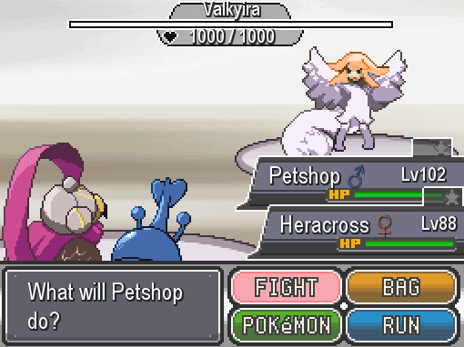 This is the third Boss fight. It is a fusion between Willie and Kirlia. It is Light/Fairy-type and has a ton of HP, getting to 1000 HP. Defeating it is pretty easy with a Steel-type (Like Aron and its evolutions) since it is immune to the Light-type, and Fairy-type has a weakness against it. A battle that will take you a lot of turns; just be patient and don’t stop hitting it.