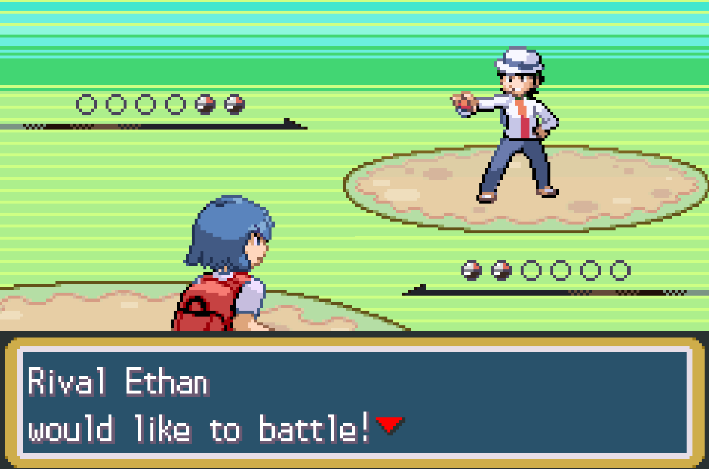 Your Rival will challenge you to a battle just up the road. His starter will always be strong against your Pokemon, but it won’t know any counter moves just yet. This is his party: