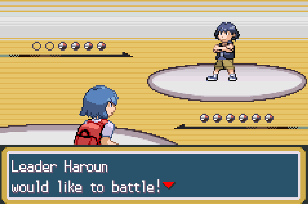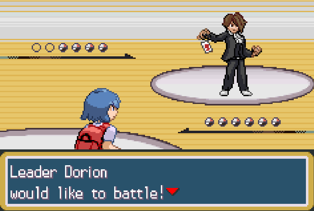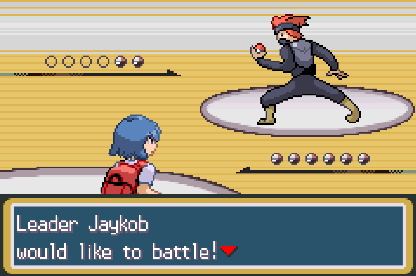 There’s nobody else in this Gym, so talk to Jaykob and challenge him.
