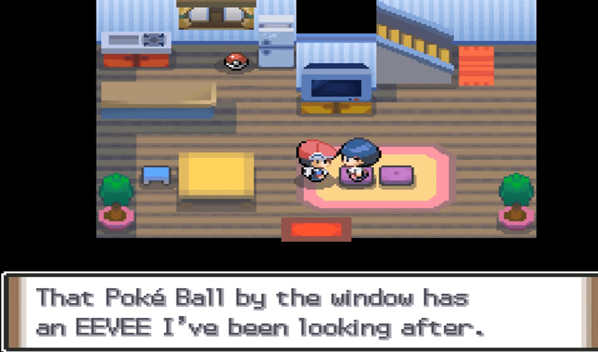 After choosing your starter, your mother will give you an Eevee. I recommend you evolve Eevee into something to cover your starter’s weaknesses, or even into an Espeon or Umbreon, which also are great options to have. This election can be completely up to you, but I don’t recommend evolving Eevee into the same type as your starter because you’ll need a balanced team to confront this game properly.
